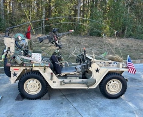 Later that afternoon, they displayed Col. Kegerreis’ army jeep and antique 1985 GMC Caballero at the Veteran’s Day festivities at Landmark Nursing Home in Collins, MS. While at the Landmark, Col. Kegerreis presented a military service appreciation coin to a Veteran who resided at the living center.