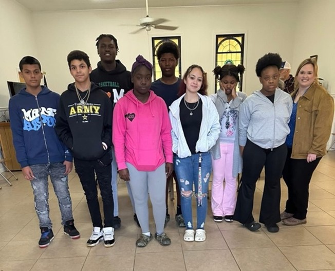 Helping to pack the boxes and deliver them to the Department of Human Services were Law and Public Safety students of Covington County Career and Technical Education Complex. They were accompanied by their teacher, Jennifer Cade.