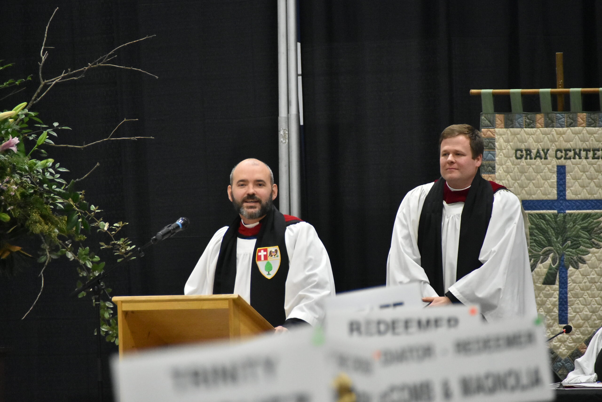The Revs. Will Compton and CJ Meaders, rectors of host parishes Chapel of the Cross, Madison and St. Columb’s, Ridgeland, welcomed those in the room and on the screens. They took a moment to thank their council co-chairs, Rebecca Haas and Renee Mader, and invited both Ridgeland Mayor Gene McGee and St. Andrew’s Head of School Kevin Lewis to extend welcomes of their own.