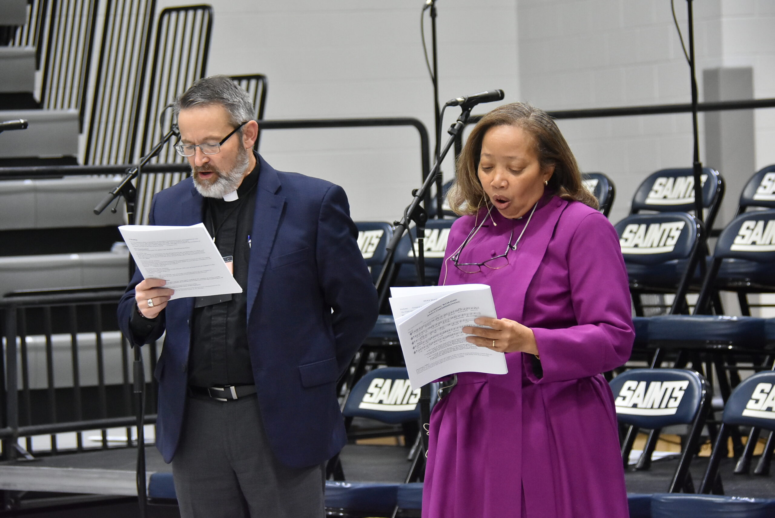 Rev. Canon Meade and Bishop Wells lend their voices to the chorus during worship
